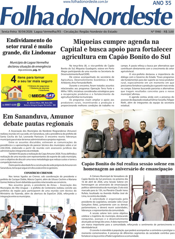 A Prefeitura de Lagoa Vermelha, por meio da Secretaria Municipal de Agricultura e Meio Ambiente, dará início ao cronograma de podas no município a partir do dia 14 de abril. A primeira região atendida será a área central, com início já na pr (...)